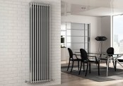 Tesi Chrom – chromowana wersja popularnego dekoracyjnego grzejnika pokojowego firmy Irsap. Grzejnik wykonany jest ze stalowych, okrągłych rur o średnicy 25 mm tworzących pionowe profile grzewcze (kolumny) połączonych wytłaczanymi, stalowymi kolektorami.