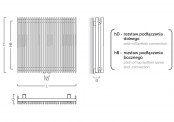 Model zbudowany jest z profili grzewczych o wymiarach 30 x 10 mm, a ustawione są one w pionowej orientacji. Z kolei kolektory są poziome, mają przekrój kwadratu, a ich wielkość sięga 35 x 35 mm.