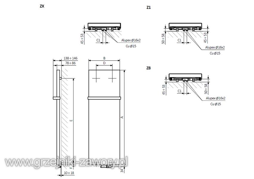 - podłączenie dolne środkowe 50 mm z grzałką po prawej stronie,
