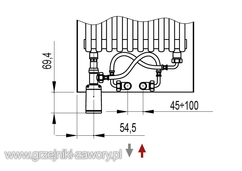 Grzejnik wyposażony jest w nowoczesne, ukryte podłączenie hydrauliczne, które zakrywa zawory, poprawiając tym samym walory estetyczne; przyłącze tego typu gwarantuje również szybką i bezproblemową instalację (system zaworu i zaworu odcinającego) - elastyczność instalacyjna umożliwia zmianę rozstawu osi hydraulicznej w zakresie od 45 mm do 100 mm.