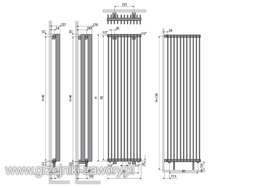 Grzejnik produkowany jest w dwóch wersjach: TV1 oraz TV2, posiadających odpowiednio jeden i dwa rzędy profili grzewczych. Udoskonalona wersja nada się więc świetnie do wnętrz o większym zapotrzebowaniu na ciepło.