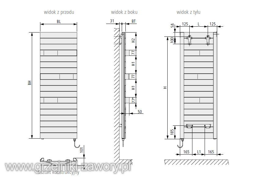 Grzałka elektryczna jest wstępnie montowana na dole grzejnika w rurze rozdzielczej; podłącza się ją do sieci 230 V / 50 Hz AC przez gniazdo podtynkowe.