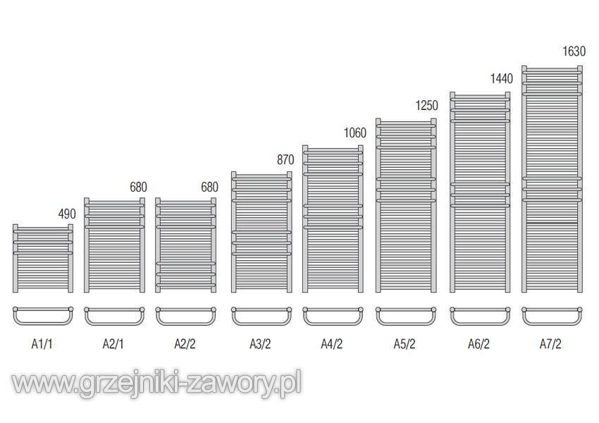 Funkcjonalna drabinka łazienkowa dostępna w szerokiej palecie rozmiarów i kolorów specjalnych. Grzejnik Aria (A) produkowany jest w wersji wykonanej ze stali lub z miedzi.