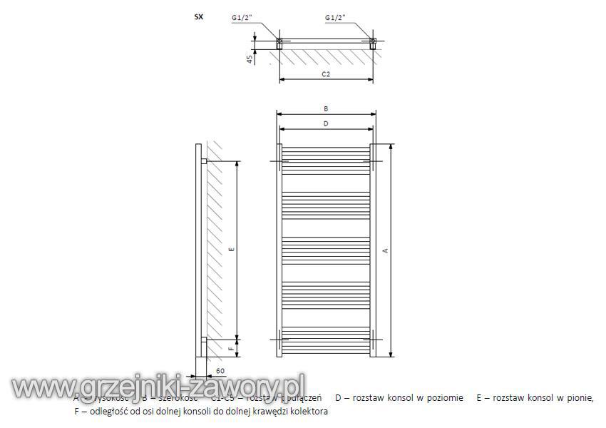 Poziome profil grzejnika ułożone są w grupach po 4, a pomiędzy poszczególnymi grupami pozostawione zostały większe odległości pozwalające na suszenie na grzejniku ręczników. W zależności od wybranej wysokości grzejnika profile tworzą od 2 do 7 większych przestrzeni.