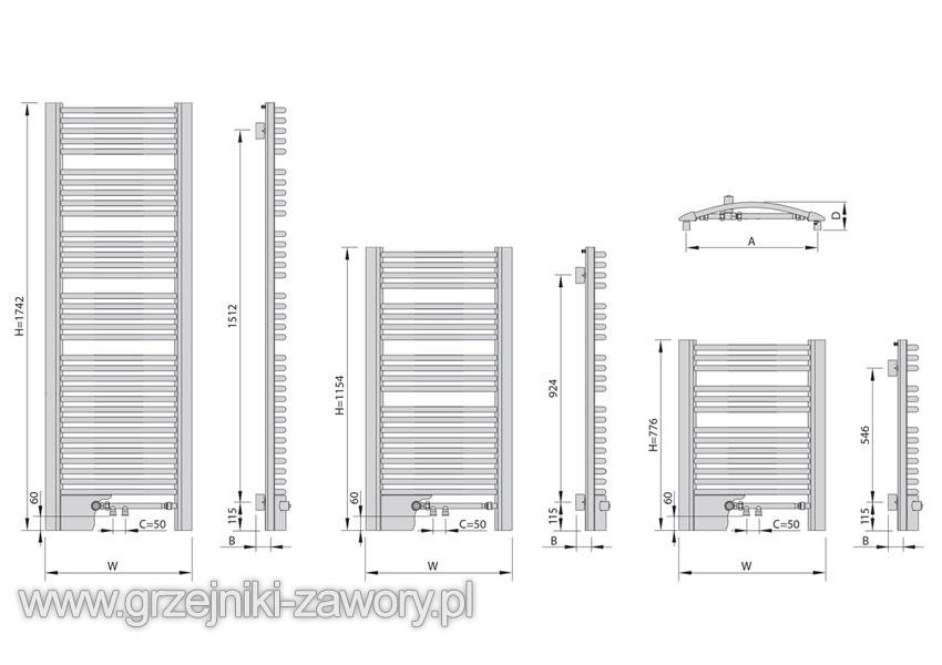 - FXB - podłączenie dolne standardowe oraz środkowe 50 mm, wbudowany zawór termostatyczny i głowica w komplecie