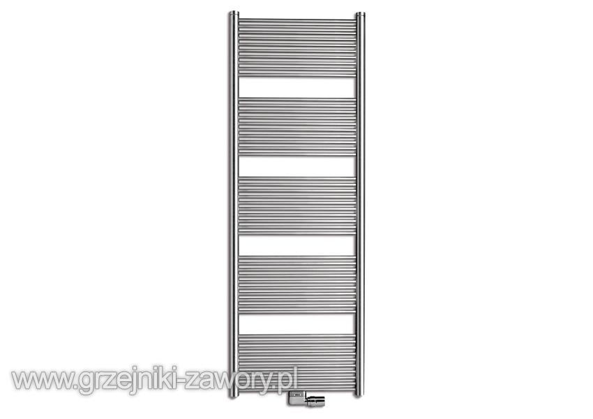 Dodatkowo, grzejnik występuje w dwóch wariantach - z prostymi profilami grzewczymi oraz lekko wygiętymi. Warto wspomnieć, że Malva występuje we wszystkich kolorach oferowanych producenta. W komplecie z grzejnikiem znajdują się zawiesia ścienne. Ich barwa zależy od wybranego koloru grzejnika - jeśli jest biały, zawiesia będą białe, w przypadku innych zabarwień kaloryfera będą chromowane. Kaloryfer jest podłączany za pomocą wejścia dolnego środkowego z rozstawem osi 50 mm oraz dolnego standardowego.