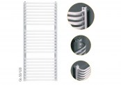 Zbudowana jest w orientacji pionowej i składa się z okrągłych profili grzewczych o średnicy 22 mm każdy. Łączą one ze sobą kolektory, które kształtem przypominają literkę „D” i mają wielkość 40 x 30 mm. Pomiędzy rzędami profili grzewczych znajdują się przerwy, które służą za miejsce do odwieszania mokrych tekstyliów. Powierzchnia pokryta jest powłoką lakierniczą.
