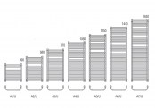 - przyłącza na kolektorach pionowych 4 x 1/2”, w wersji z zasilaniem bocznym dodatkowe przyłącza na kolektorze bocznym, rozstaw przyłączy zależny od wysokości grzejnika;