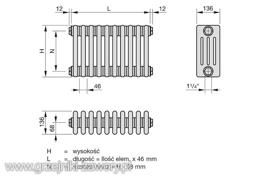 Modułowa budowa grzejnika umożliwia dowolny wybór ilości elementów z których będzie się składał Charleston w zakresie od 4 do 40.