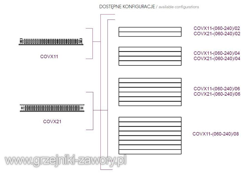 - X21 - wersja pozioma pogrubiona z dodatkowo zwiększoną mocą grzewczą