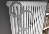 Grzejnik Tesi2 oprócz białego standardowego dostępny jest w bogatej palecie kolorów; dodatkowo w ofercie jest szeroki wybór akcesoriów dekoracyjnych i technicznych, na przykład wieszaki, zarówno w klasycznym, podłużnym kształcie, jak i geometrycznych wariacjach, zawory, czy maskownice na rury.