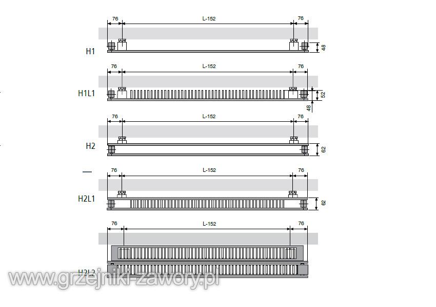 Grzejnik H2L1 to, według producenta, najbardziej uniwersalny model spośród wszystkich wariantów Viola. Wyposażony jest w dwie warstwy profili grzewczych i dodatkowe lamele – takie połączenie znacznie zwiększa jego możliwości grzewcze w stosunku do podstawowej wersji H1, przy zachowaniu tych samych wymiarów. Ciekawym i dogodnym rozwiązaniem jest możliwość montażu w formie ścianki działowej oraz dodanie nóżek do opcji naściennej – co stanowi idealne rozwiązanie dla montażu na słabo nośnych ścianach.