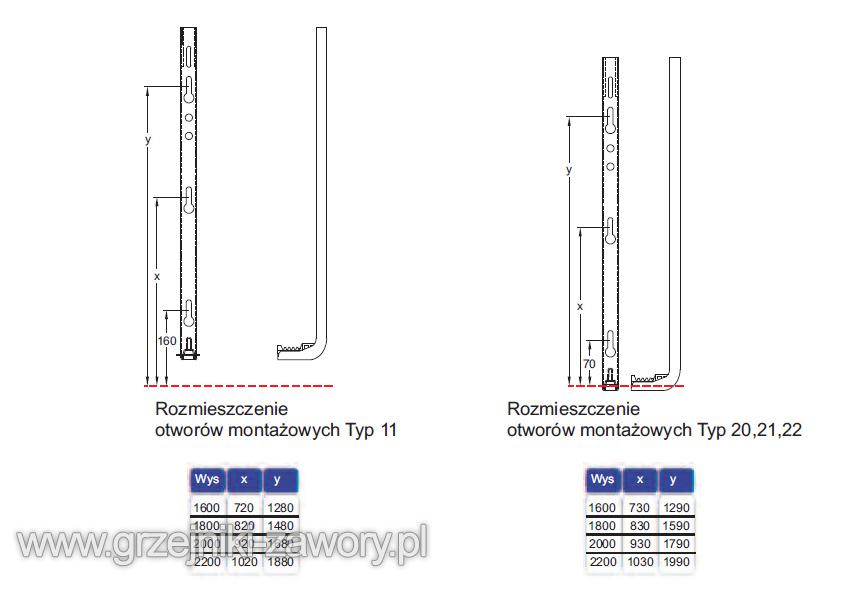 Podłączenia dostępne dla tego modelu: dolne środkowe o rozstawie osi 50 mm, dolne standardowe (o rozstawie zależnym od szerokości grzejnika); możliwe jest również podłączenie grzejnika od góry.