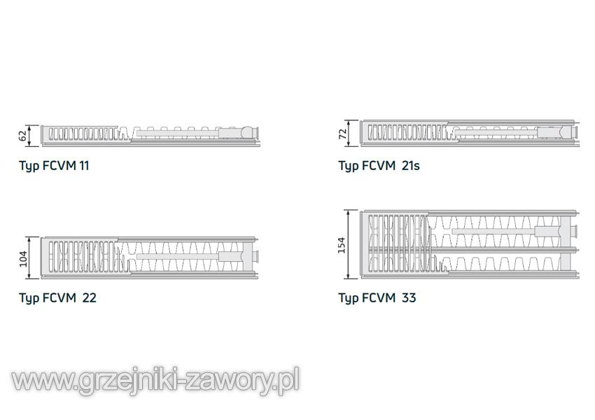 Purmo Plan Ventil Compact M można zakupić w jednym z czterech rodzajów – typ 11 (60 mm głębokość), typ 21s (70 mm), typ 22 (102 mm) oraz typ 33 (152 mm). Różnią się one od siebie nie tylko wielkością, ale również oddawaną mocą grzewczą. Grzejnik z pewnością świetnie odnajdzie się w Twoim domu, a dzięki uniwersalnemu podłączeniu, łatwo będzie wymienić go na inny model.