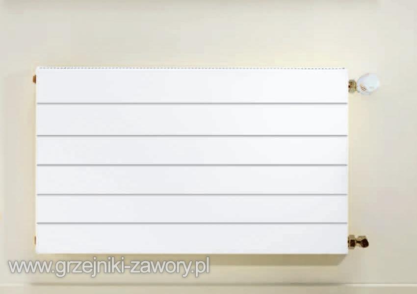Grzejnik płytowy Purmo Ramo Compact to ciekawa wariancja kaloryfera, wyróżniająca się płaskim frontem i poziomymi żłobieniami, znajdującymi się na przedniej płycie. Uniwersalna stylistyka modelu pozwala na montowanie go zarówno w nowoczesnych jak i klasycznych pomieszczeniach, gdzie będzie jednocześnie ozdobą. Przetłoczenia dodają charakteru i pewnej wyjątkowości, która wyróżnia model na tle innych.