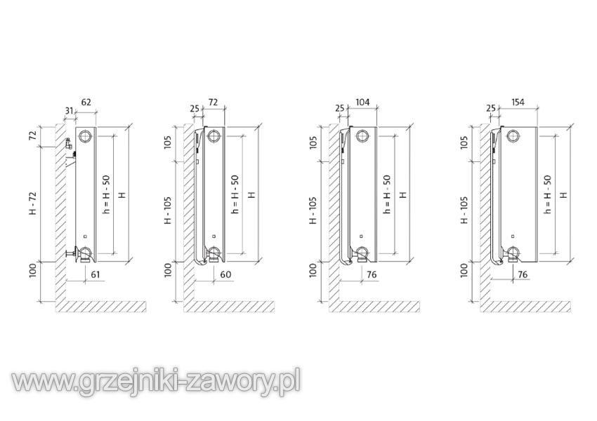 - grzejnik wyprodukowany ze stali niskowęglowej, walcowanej na zimno, blacha głęboko tłoczna;