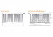 - grzejnik dostępny jest w czterech wersjach głębokości, mianowicie w typie 11 (60 mm), typie 21s (70 mm), typie 22 (102 mm) oraz typie 33 (152 mm);