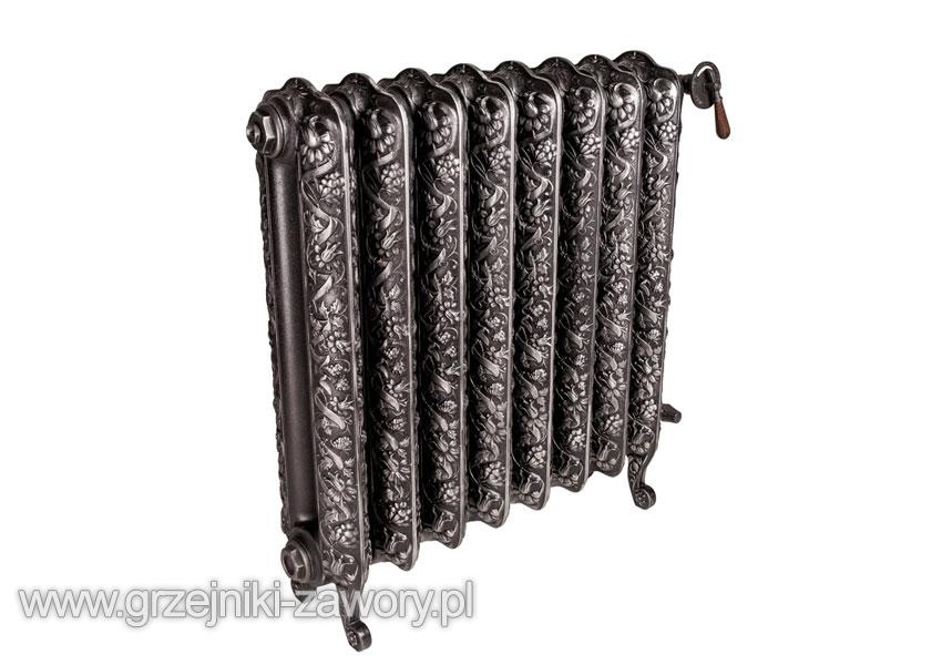 Model warto również wyróżnić ze względu na bogatą paletę kolorów, w której jest dostępny. Do wyboru są barwy dedykowane, z palety RAL, a nawet istnieje możliwość innego koloru samego kaloryfera i ornamentów znajdujących się na nim.